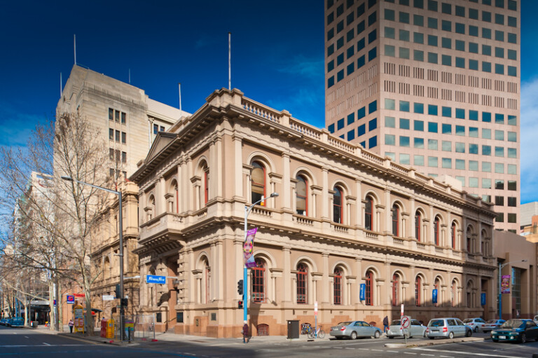 Originally occupied by the Bank of Adelaide, the sandstone building was designed by Edmund Wright and erected in 1878–1880. In 1939 and 1941, subsequent refurbishments to the western section fronting Currie Street took place, matching the Italian influenced façade of columns and distinctive arched windows. Strongly identified with a period of prosperity in South Australia in the 1870s and early 1880s, the building is one of few such examples remaining.